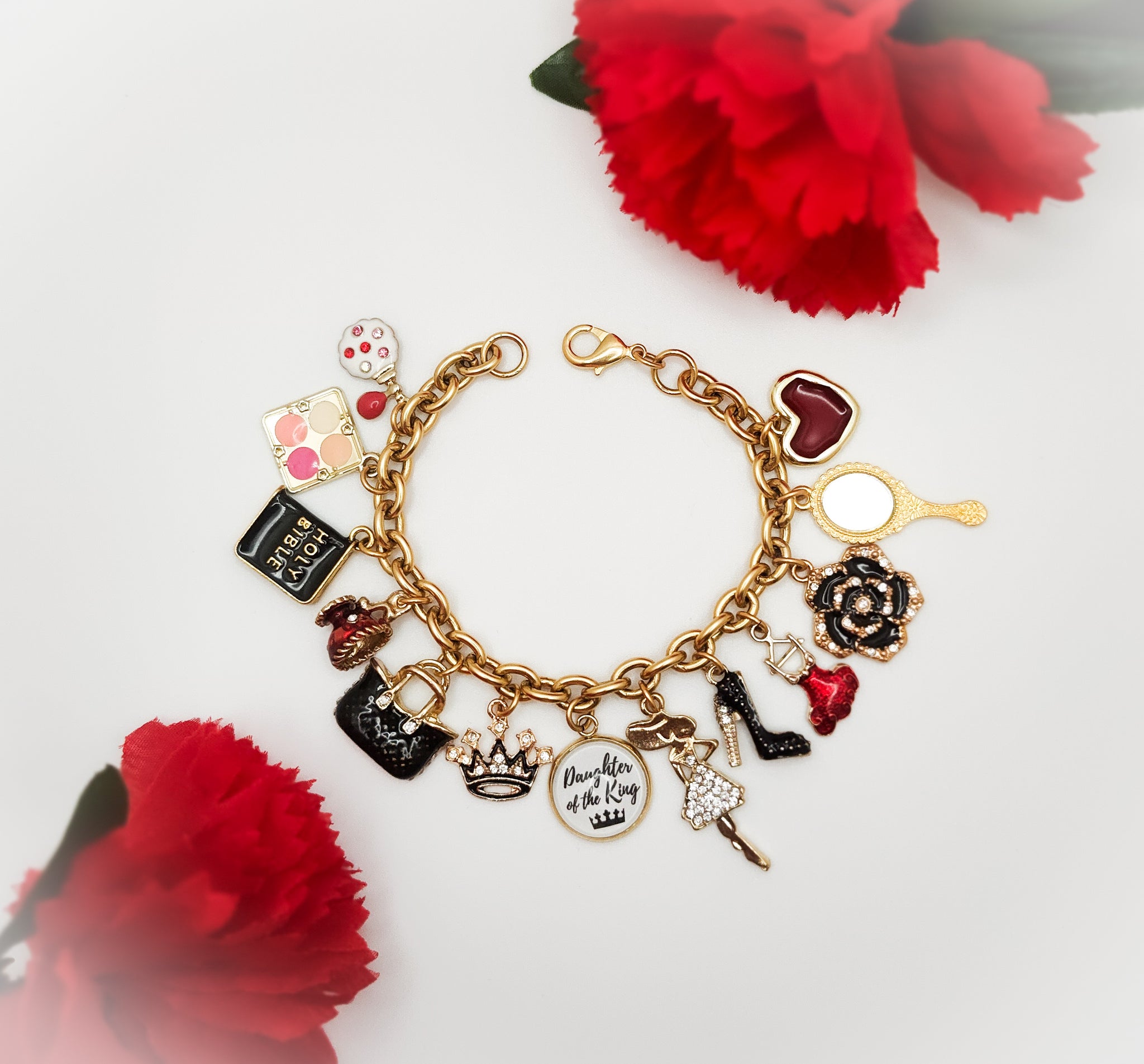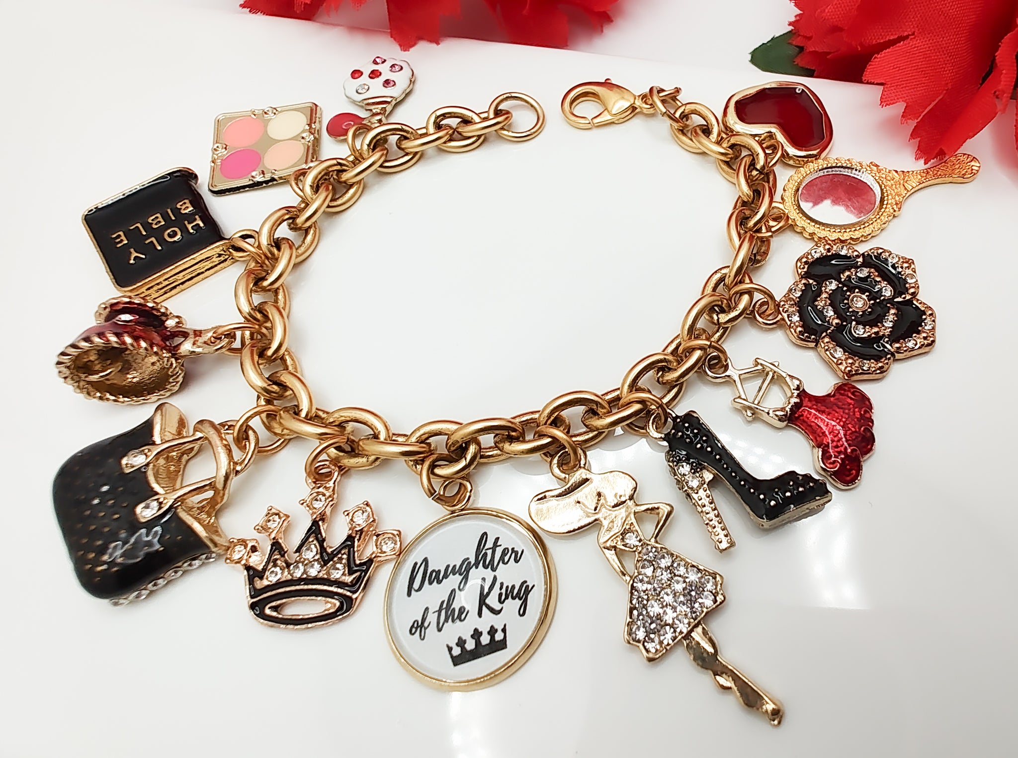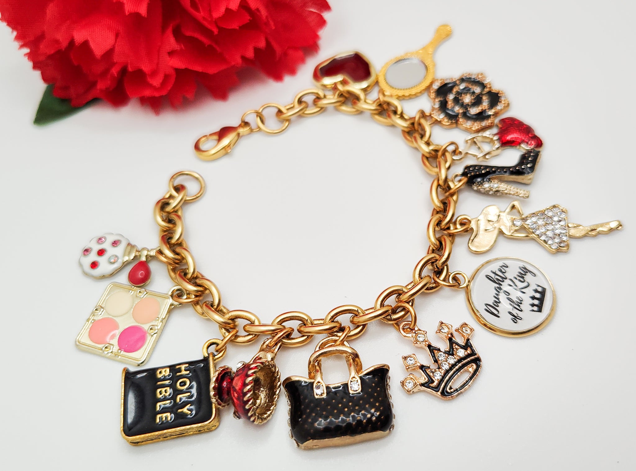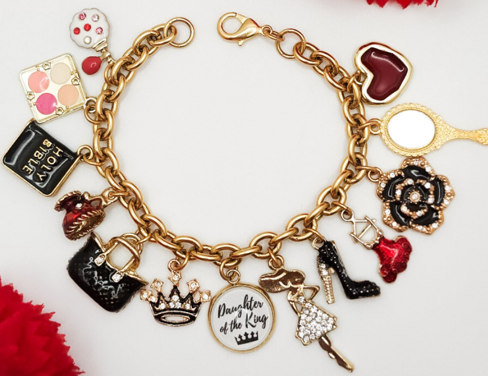 This charm bracelet is for that special woman who not only knows her worth but to whom she belong. As woman we are always so busy worrying about everyone and everything that we may forget our own worth. We must remind ourselves that we are A Daughter to the King and our Father in the heavens loves and cherish everything about us. ❤️